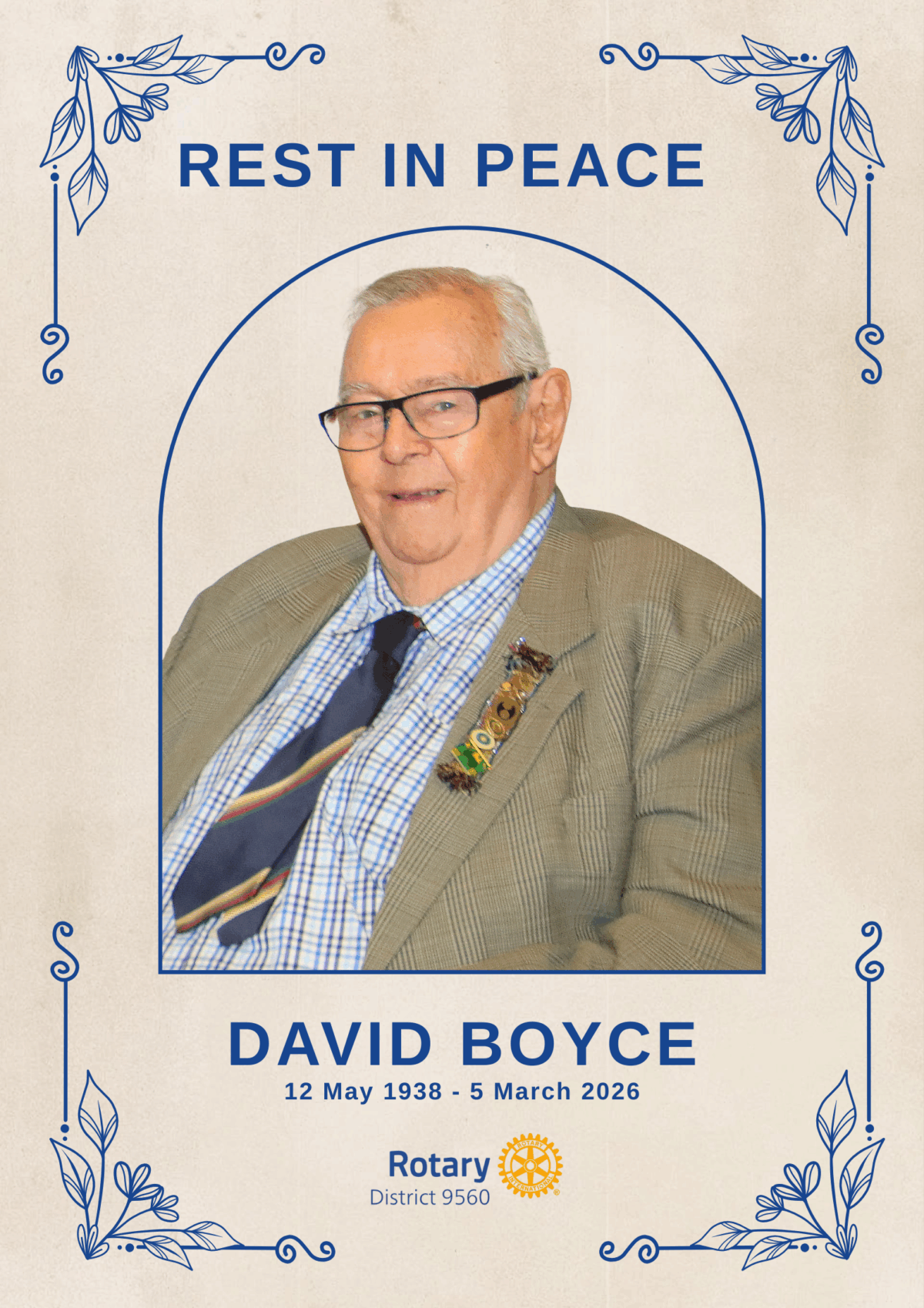 David Boyce was appointed as President of the club by the membership and his legacy began in Rotary.